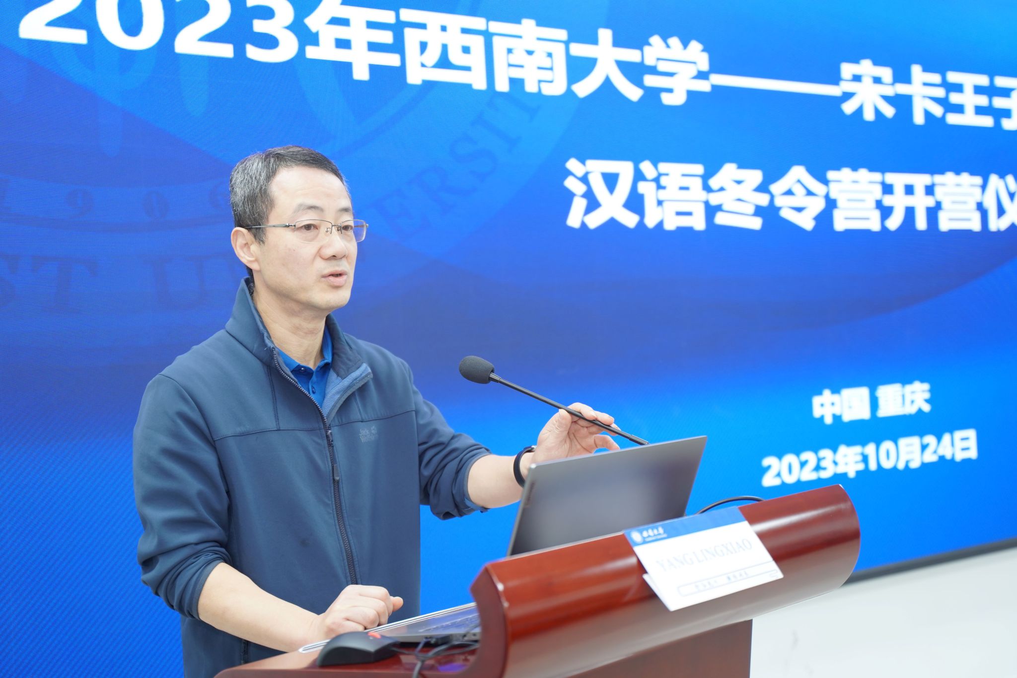 10月24日上午,2023年泰国宋卡王子大学附属中学汉语冬令营开营仪式在sunbet申搏紫云楼317会议室顺利举行,李航副经理,宋卡王子大学附属中学外语系主任SAMSUWAN ANUSARA(苏安娜)、汉语教师PHONGSIRIWIROJ LADDA(郑惠燕),sunbet申搏教师代表张波及27名泰国中员工共同参加活动。开营仪式由项目班主任杨凌霄主持。