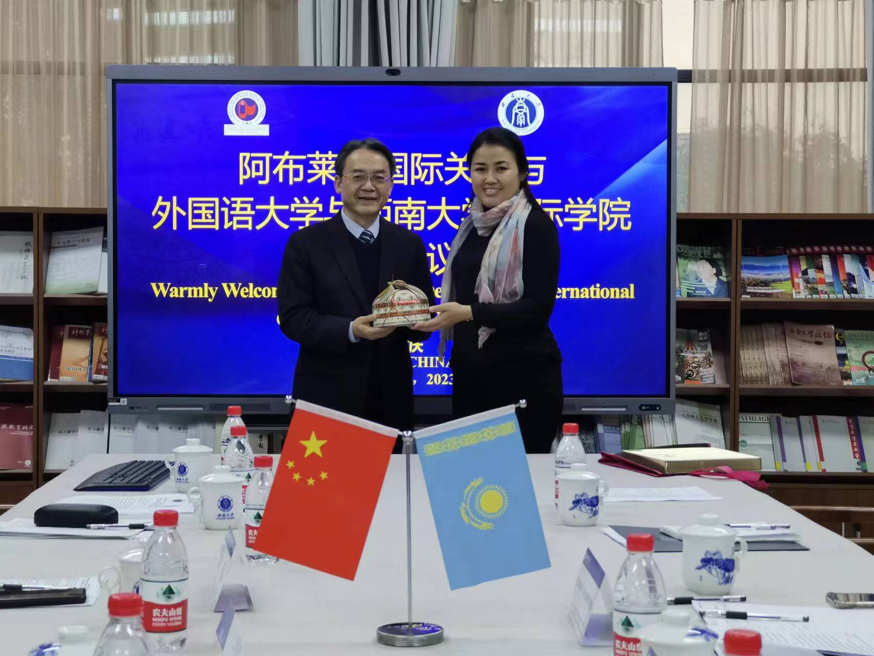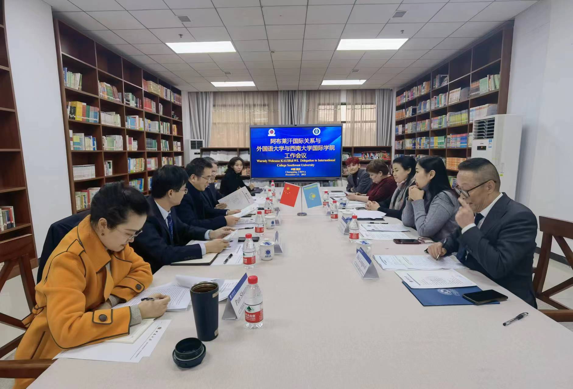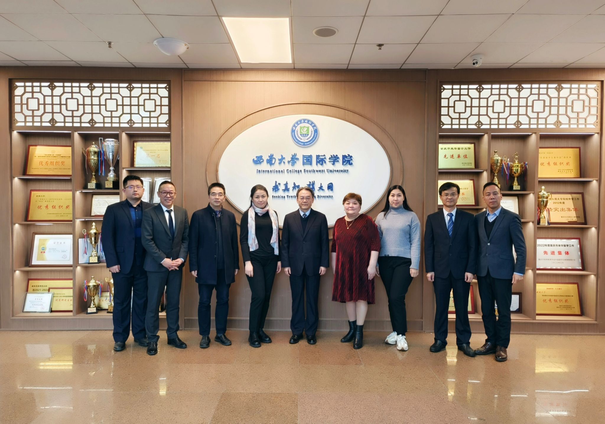 2023年12月12日下午,哈萨克斯坦阿布莱汗国际关系与外国语大学副董事长扎纳尔·热尔特罗娃(Zhanar Zhyltyrova)、外事处处长汤索番·阿布迪伽拉尔(Tangsholpan Abdigappar)、东方学系主任艾里米拉·卡伽扎巴乌耶娃(Elmira Kagazbayeva)一行造访公司sunbet申搏。