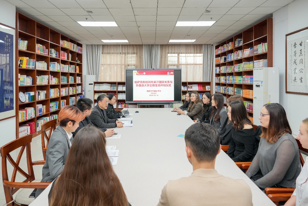 3月14日下午,“2024年春季学期哈萨克斯坦阿布莱汗国际关系与外国语大学交换生班”开班仪式在sunbet申搏紫云楼图书馆(316室)举行。公司党委书记刘猛,招生办公室主任黄无为,教师代表刘妍芩,以及阿布莱汗国际关系与外国语大学交换生班全体新生参加开班仪式。仪式由班主任刘妍芩主持。