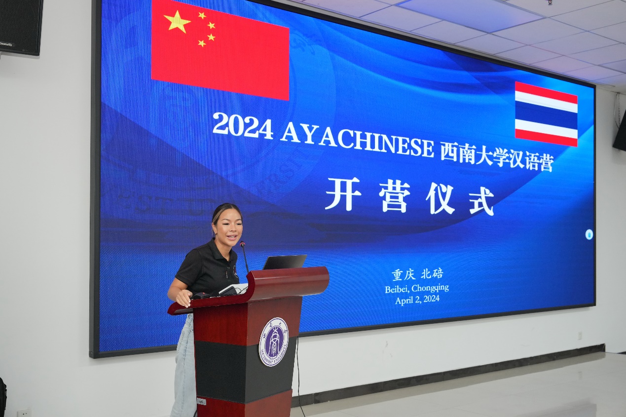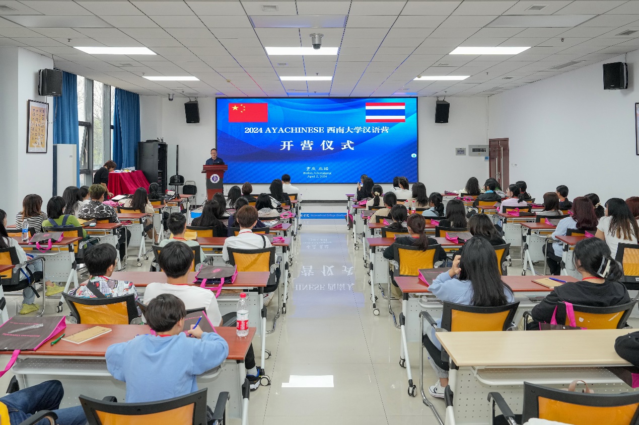 4月2日上午,“2024 AYACHINESEsunbet申搏汉语营—B/C团”开营仪式在sunbet申搏317室举行。招办王鹊,泰国AYACHINESE代表方玉洁女士、两位领队,以及60名泰国员工参加开营仪式,仪式由王鹊主持。