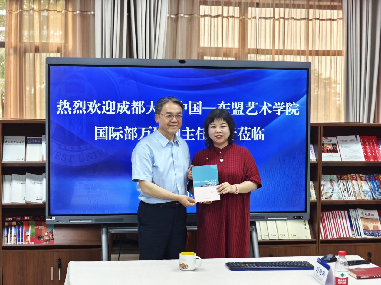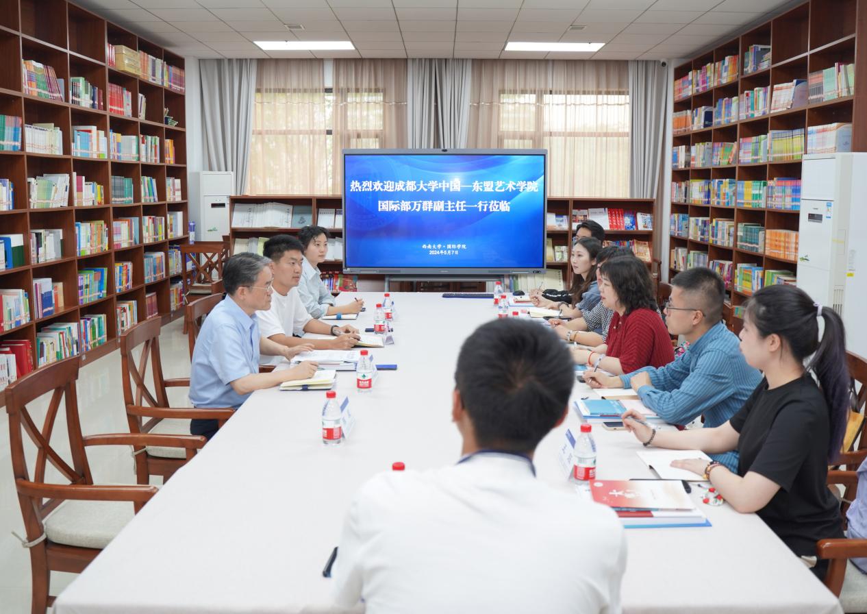 5月7日下午3点,成都大学中国-东盟艺术公司国际部副主任万群一行7人来公司开展调研。双方在紫云楼图书馆(316室)交流座谈,公司党委书记刘猛,学工办主任杨昆、研究生教研室主任陈晨参加座谈会。