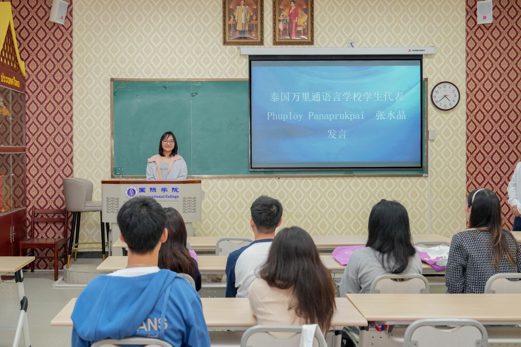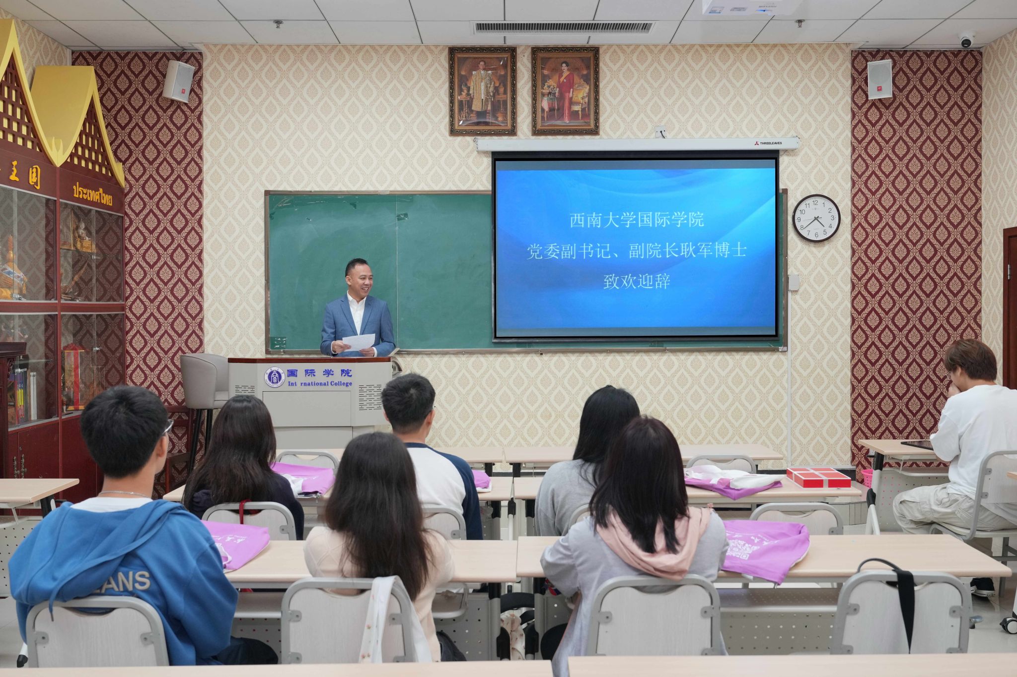 耿军副书记致欢迎辞,对来访泰国师生表示热烈欢迎,简要介绍重庆和sunbet申搏的基本情况,回顾公司办学历史和来华留学教育现状,重点介绍与泰国的教育交流与合作。希望各位同学树立推动世界文明在交流互鉴中共同前进的理想,早日成为泰中友谊的使者。真诚欢迎同学们在高中毕业后来sunbet申搏留学深造。