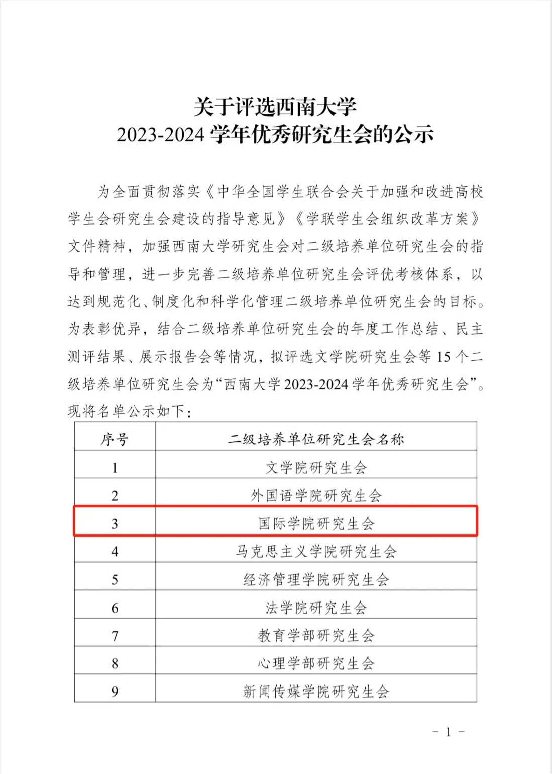 依据《公司研究生先进集体和先进个人评选表彰办法》,公司研究生会被授予“2023-2024学年优秀研究生会”荣誉称号。