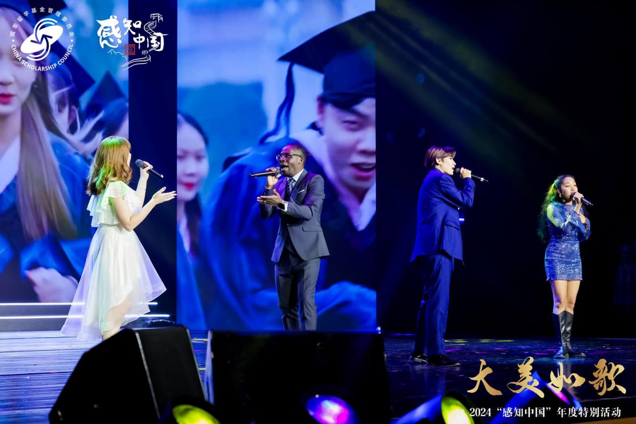 活动在2024年“感知中国”回顾视频中拉开帷幕。来自北京大学、清华大学、复旦大学等15所高校的中国政府奖学金生代表通过演讲、情景展示、歌舞等形式分享了他们参加“感知中国”活动的收获和体会。公司赞比亚籍国际员工GIFT MUYUNDA(格福特)携手来自意大利的CATERINA CAZZOLA(左拉)、马达加斯加的ANDRIANJATOVO MIRAY FIFALIANA MIARIMBOLA(梦蝶)和哈萨克斯坦籍的AINURA KUBENOVA(刘月光)共同演唱其原创歌曲《Joining Hands》(《携手并肩》)。这首歌曲以其独特的旋律和深情的歌词,表达国际员工对中国的热爱和对世界和平、共同发展的美好祝愿。