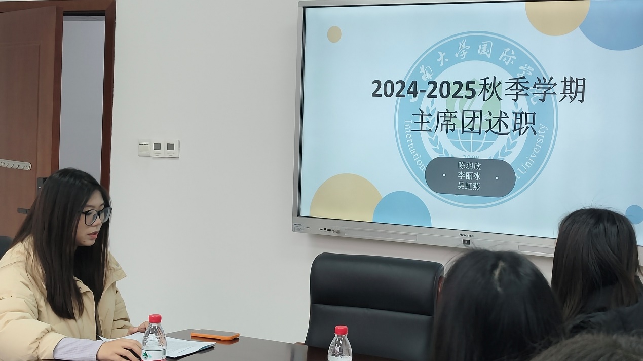 新闻中心负责人胡晶晶在述职中明确了新闻中心的职责定位,作为“奔赴在前线”的文字记录者和传播者,主要负责公司各项活动的新闻采编和撰写工作。她重点总结了本学期的工作成果,并对未来工作进行了展望。她寄语部员保持热爱与初心,精进稿件质量,积极配合研究生会整体工作,为公司新闻宣传注入更多活力。