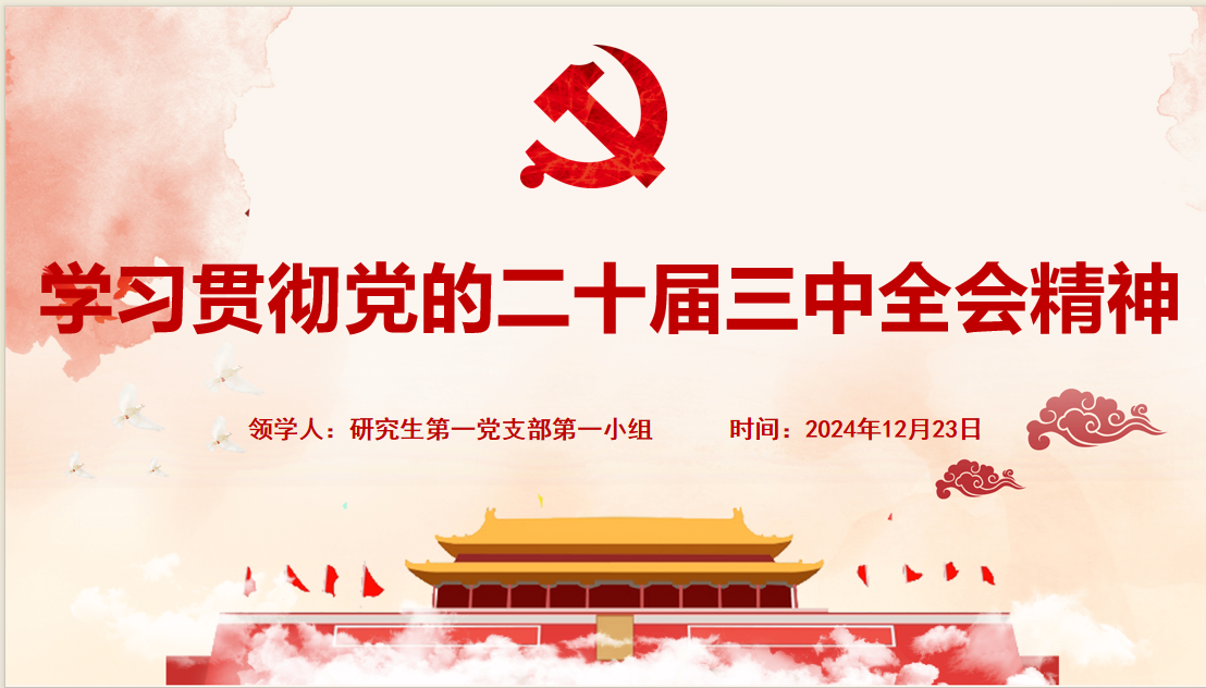 2024年12月18日上午9:30,研究生第三党支部在紫云楼310室,以线上线下结合的方式举办了主题为“学习贯彻党的二十届三中全会精神” 的党日活动。本次活动旨在引领党员领会党的二十届三中全会精神,深刻学习习近平总书记关于意识形态工作的重要论述、习近平总书记关于防范化解重大风险的重要论述以及《中国共产党党员网络行为规定》,切实增强党员的政治意识、责任意识和担当意识。