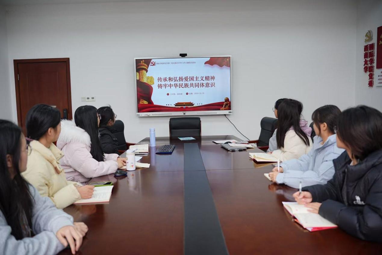 12月19日下午15:00,研究生第二党支部在sunbet申搏304会议室召开了主题为“传承和弘扬爱国主义精神,铸牢中华民族共同体意识”的党日活动。
