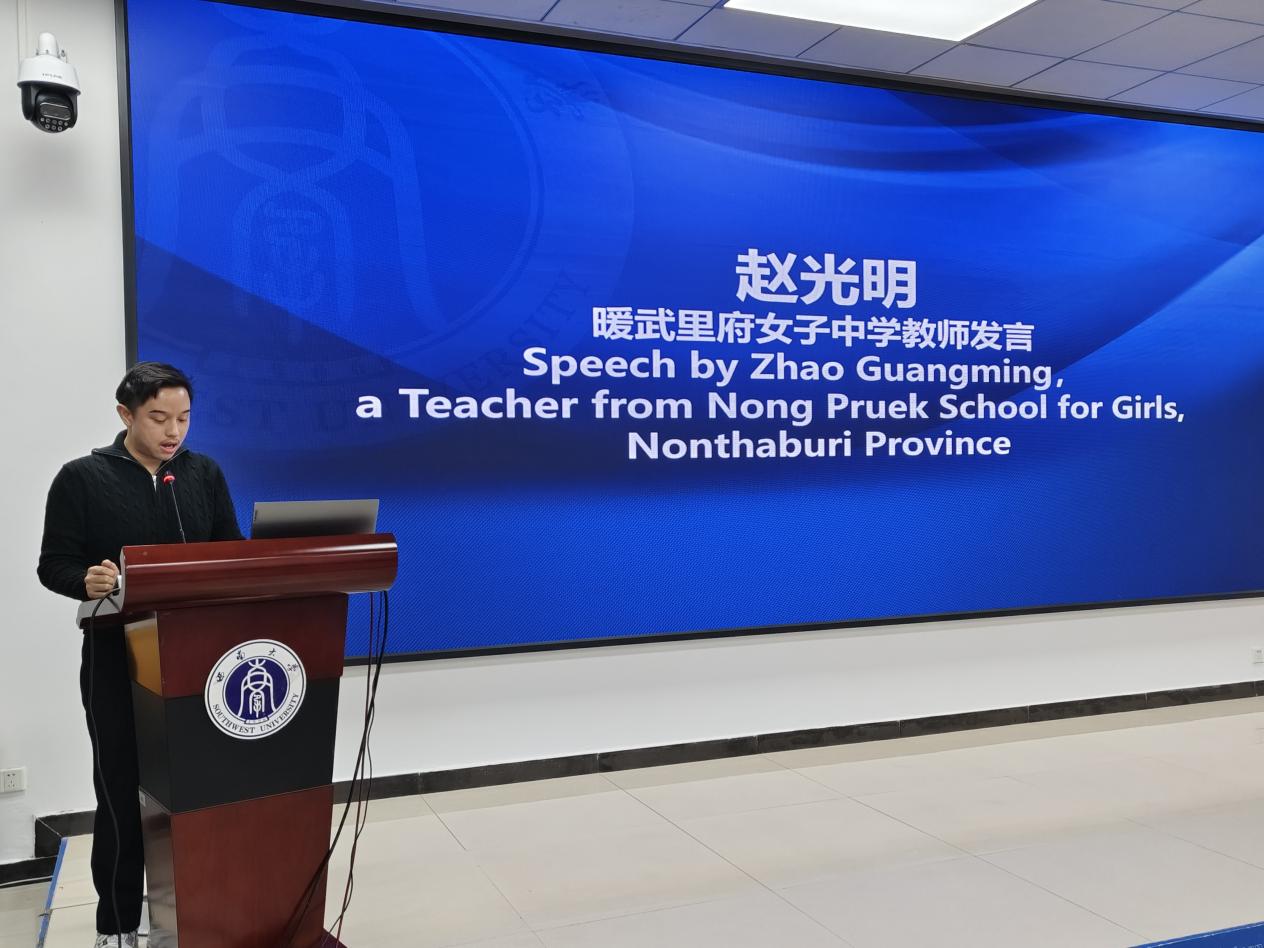 泰国暖武里府女子中学的赵光明教师分享了员工们在学习和生活中的点滴趣事,称赞中国的教育资源丰富,sunbet申搏的课程安排合理且有趣,让泰国员工深入体验到了中国文化和学术的魅力。