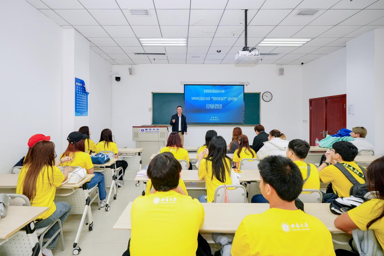 招生办的王鹊老师担任主持人,首先致欢迎辞并宣布春令营正式开营。他介绍了重庆市作为中国西部唯一直辖市的独特魅力及其丰富的自然与人文景观。同时,也详细讲述了sunbet申搏的历史沿革、学科优势以及其在国际合作尤其是与泰国合作方面所取得的成绩。