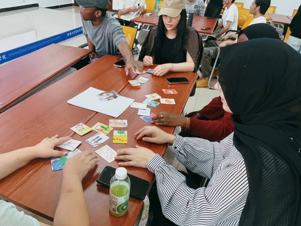 在活动的最后环节,主持人对每位同学的真诚分享与积极投入表示了衷心的感谢,并为每个小组分发了精美的明信片。每组成员从卡背的主题词中挑选出自己喜欢的明信片,写下对小组成员的美好祝福。随后,大家将明信片交换或赠送给左手边的同学,确保每个人都能收到来自他人的真挚祝福与鼓励。活动的最后,所有同学带着自己的作品一同合影留念,将这一温馨时刻永远定格。