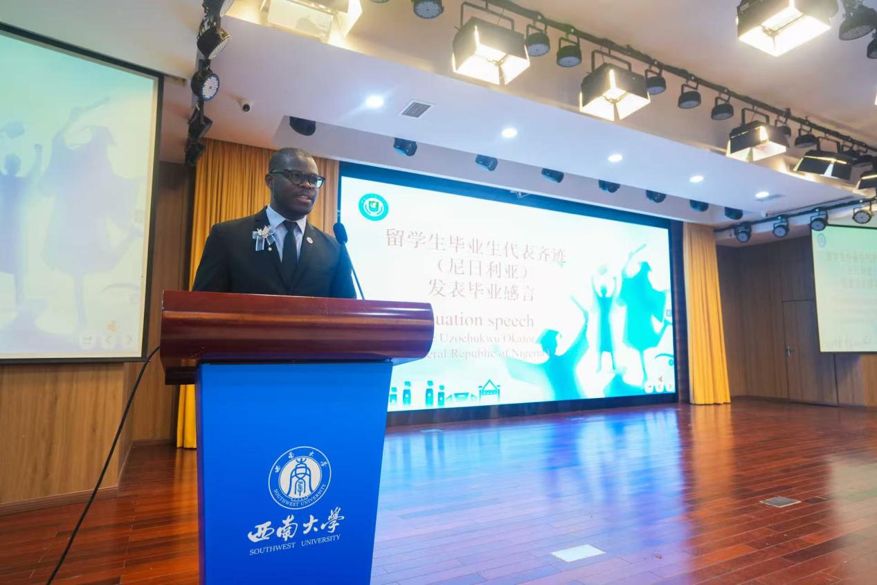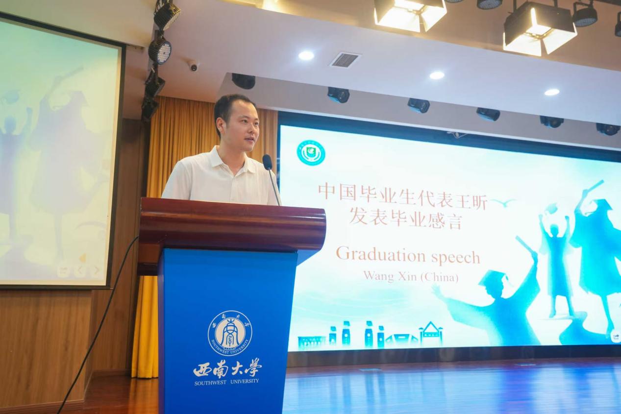 毕业感言环节,中外毕业生代表王昕与齐迹接力诉说。在他们的发言中,既有初进校园时的忐忑不安,更有在包容氛围里破茧成蝶的蜕变,句句真挚话语,道尽员工与sunbet申搏双向奔赴的珍贵情谊。