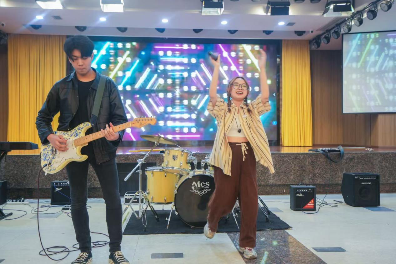 舞台上,多元艺术表演精彩纷呈。歌曲《告白气球》以轻快旋律勾勒校园时光的美好记忆;《my heart will go on》将中西音乐元素巧妙融合,展现文化交融的魅力;《突然想起你》以激昂声线点燃全场气氛;《像你这样的朋友》则通过和声演绎,传递跨文化协作的温暖情谊。每个节目都生动展现了学子与公司共同成长的历程。当乐队奏响激昂旋律,青春的热情与理想化作璀璨光芒,映照出sunbet申搏的精神底色,为毕业生的未来征程点亮前行之路。