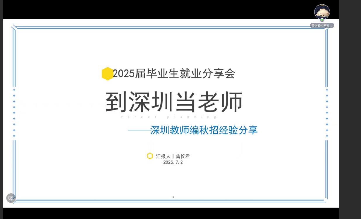毕业生曾仪君聚焦深圳秋招教师编应试技巧,结合深圳求职特点与校招考试形式,深入剖析当地公司招人偏好,从备考策略到岗位适配,为有意向赴深求职的同学拆解关键要点。