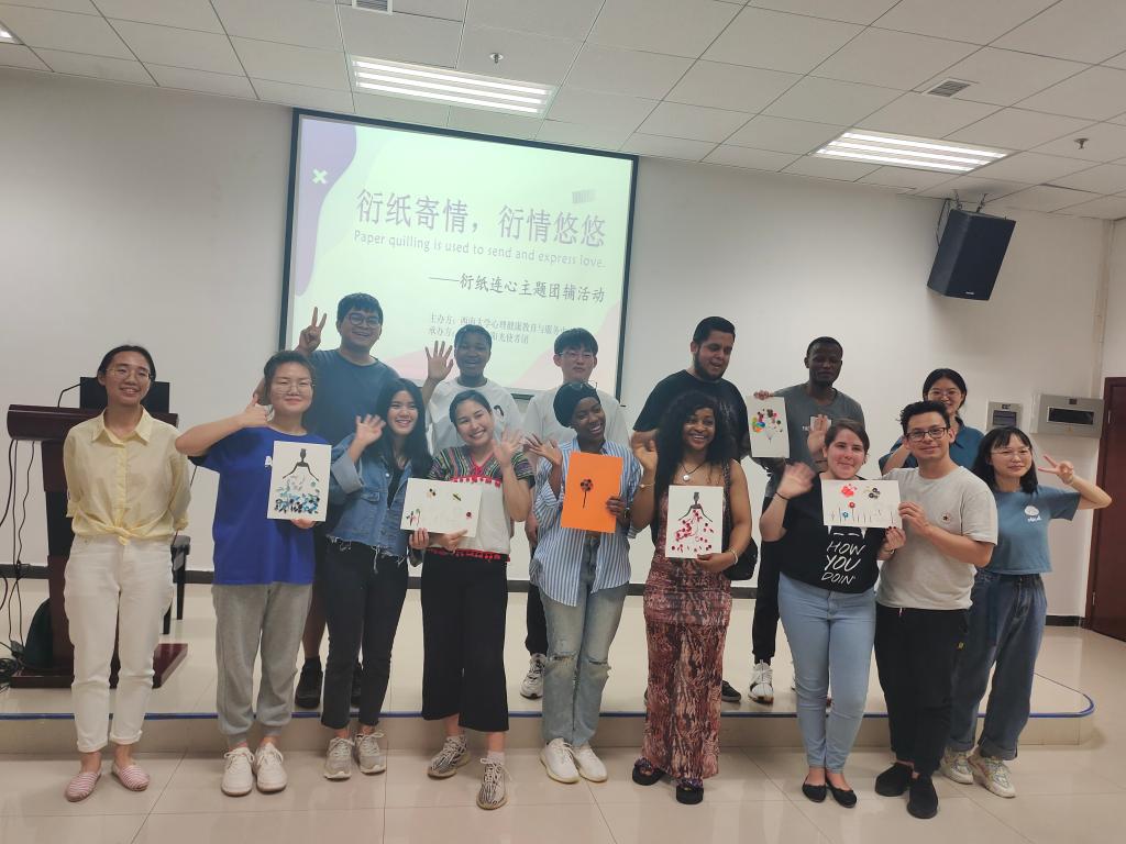 一卷小纸,涓涓情思,纸短情长,以敬相逢、相识与相知。由sunbet申搏和校心理健康教育与服务中心主办,sunbet申搏阳光使者团承办的“衍纸连心”主题团辅活动于4月23日晚18点在sunbet申搏317教室举行,近20名中外员工相聚于此,一同度过了一个轻松、愉快的夜晚。