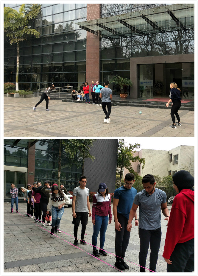2019年3月16日下午一点,2018级泰国正大管理公司班和2018级埃及艾因夏姆斯大学班的共计34名员工,在吴宗燕老师和钟万平老师的带领下,在sunbet申搏楼前集合,进行了一场以“了解和感受中国民间传统游戏”为主题的趣味运动会。