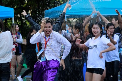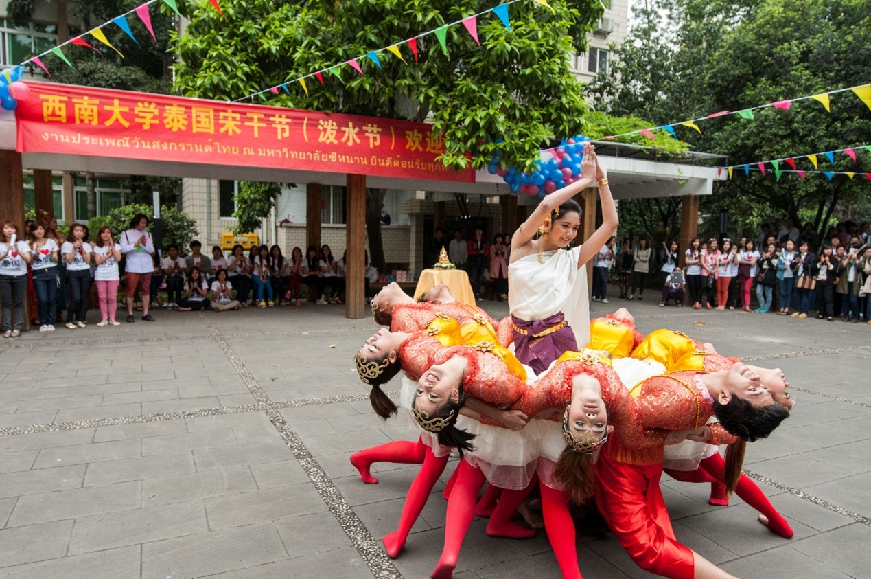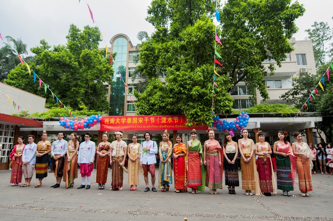 “宋干节”又称“泼水节”,是泰国一年一度的新年庆典,人们通过相互泼水来表达对祖国、家人、朋友的祝福之情。泰国是公司最大的来华职工源国,每年有近300名泰国员工在董事长期学习,公司设有与泰王国驻成都总领馆共建的“泰国文化教室”,自2005年以来公司已成功举办十四届泰国宋干节。每年的宋干节不仅有神圣庄严的浴佛仪式,还有各国员工精彩的泰式歌舞表演。每年的宋干节不仅有泰国、缅甸、老挝等有泼水节传统国家的职工参与其中,也吸引了来自世界各地的中外员工参与到“宋干先生”“宋干小姐”评选、一句泰语比赛和泼水狂欢之中,已然成为一场中外师生联欢的校园活动品牌。