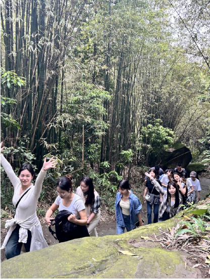 活动伊始,同学们在紫云楼集合后乘坐大巴前往缙云健身梯道,稍作休整,在组织委员胡渝和团支书陈苗苗的带领下,开始有秩序地徒步缙云山,途中观看浮雕、牌坊和缙云山赋等缙云山文化遗迹。