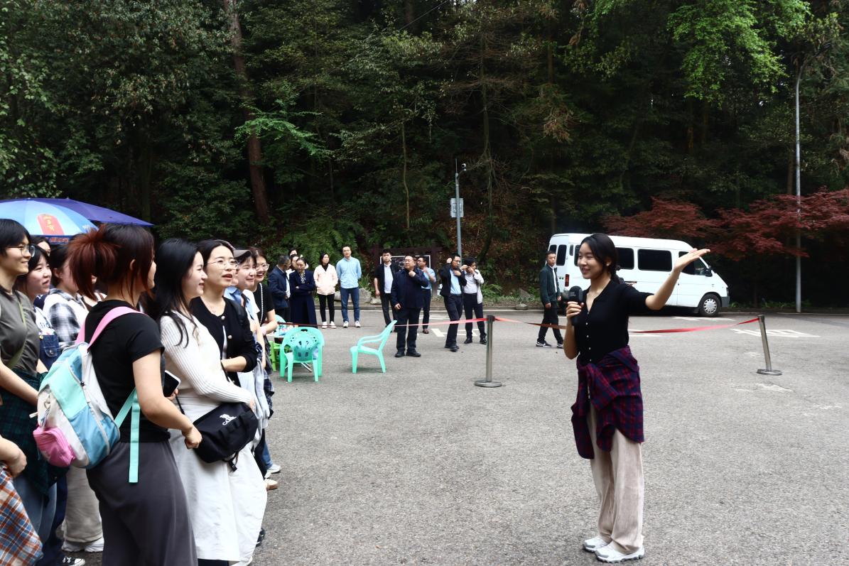 到达中共中央西南局缙云山办公地旧址,胡渝同志带领大家进入旧址进行参观,参观前党员师晓萱和团员吴虹燕热心为大家讲解当时中共中央西南局在重庆的历史,再现那段解放西南、建设西南波澜壮阔的历史。