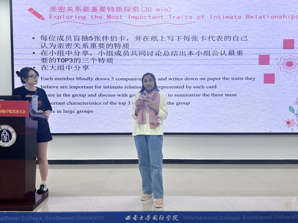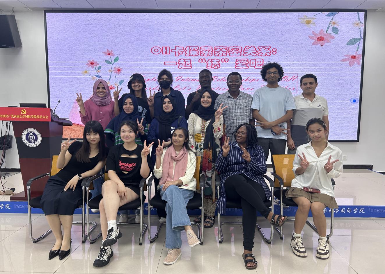 心同行,爱共鸣。为更好地帮助国际员工正确认识亲密关系,深入了解自我、促进个人成长,主题为“探索亲密关系——一起‘练’爱吧”心理团辅活动于6月21日下午在紫云楼317室成功举办。活动由sunbet申搏实习心理咨询老师王一伊、崔雪涵共同主持,数十名国际员工参加本次活动。