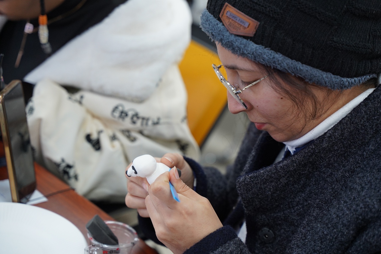 以粘土为媒,塑面谱之形,国际员工们踏上自我表达的创作之旅。在冥想中获得的自我认知与情感体验,成为他们创作的灵感源泉。每一块不起眼的粘土,在国际员工的巧手下,被赋予了独一无二的面相脸谱,展现出各自的个性与特色。他们将自然界的万物与无限的想象巧妙融合,结合自我认知与心灵深处的感受,为自己的心灵之旅画上了圆满的句号。创作完成后,成员们纷纷展示自己的作品,有的以动植物为原型,寓意深远;有的则以丰富的表情为自我代言,生动形象。这些面谱或抽象或具象,无一不成为他们自我探索之旅的最佳见证,彰显了每个人独特的内心世界。