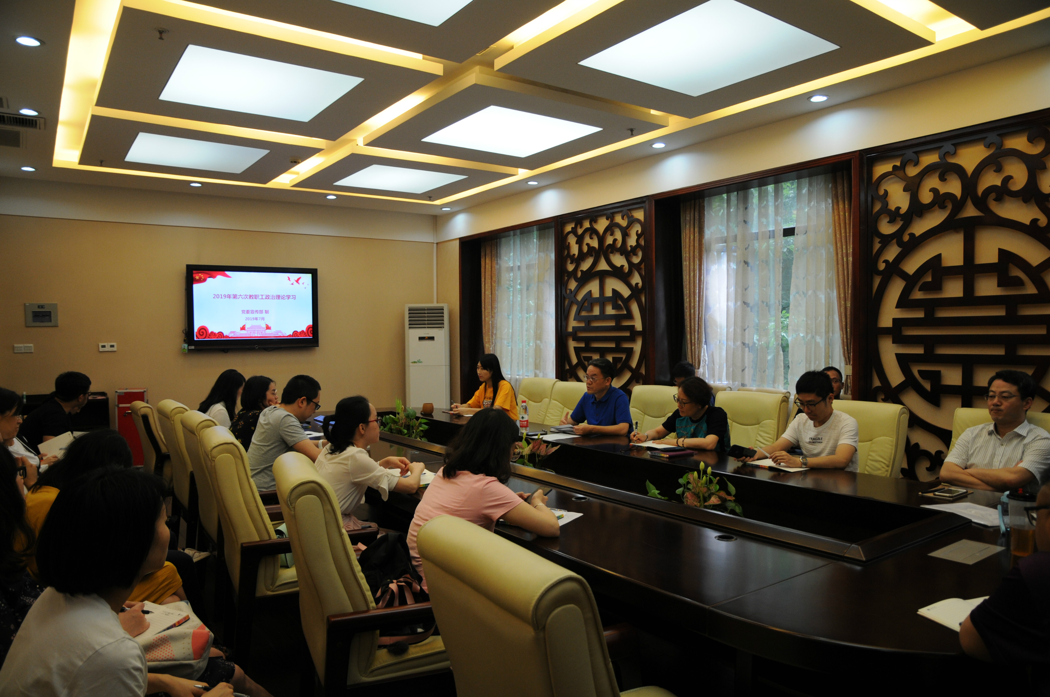 201975日下午3:00,sunbet申搏全体教职工在紫云楼签约室开展本年度第六次政治理论学习活动。会议由刘猛书记主持。