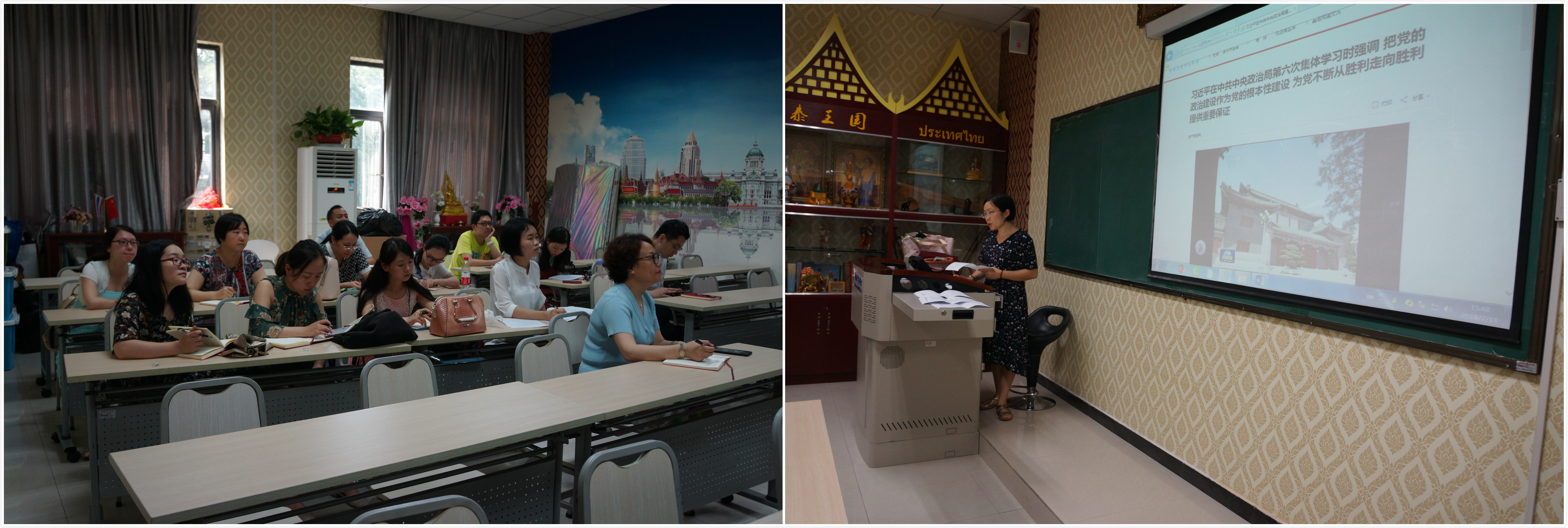 首先,支部书记邱睿同志向大家传达了教育部第三巡视组关于师生党员学习效果的问题反馈,并建议大家在日常生活中应加强对党章党规及其他知识的学习。其次,大家认真学习了《党的十九大报告》,并观看了相关视频,坚持读原著、学原文、悟原理,确保将十九大精神与实际结合,深刻理解。接着,大家就“如何提高组织生活质量”主题展开学习讨论,党员同志们纷纷建言献策。吴宗燕同志提出可以将主题党日活动学习内容与中国传统音乐和诗歌相结合,集唱、传、颂于一体,形式新颖,内容丰富,更能加深大家的记忆与理解。耿军同志表示形式上的完美也需要内容的支撑,我们还需要在学习内容上精准定位,做到既要海纳百川更要“钉子精神”,深入钻研学习内容。同时,我们要以先进为榜样,检讨自我,一日三省吾身,展开自我批评,不断前进。最后,邱睿同志与支部全体党员一起确定了8月的主题党日活动主题“不忘初心”。