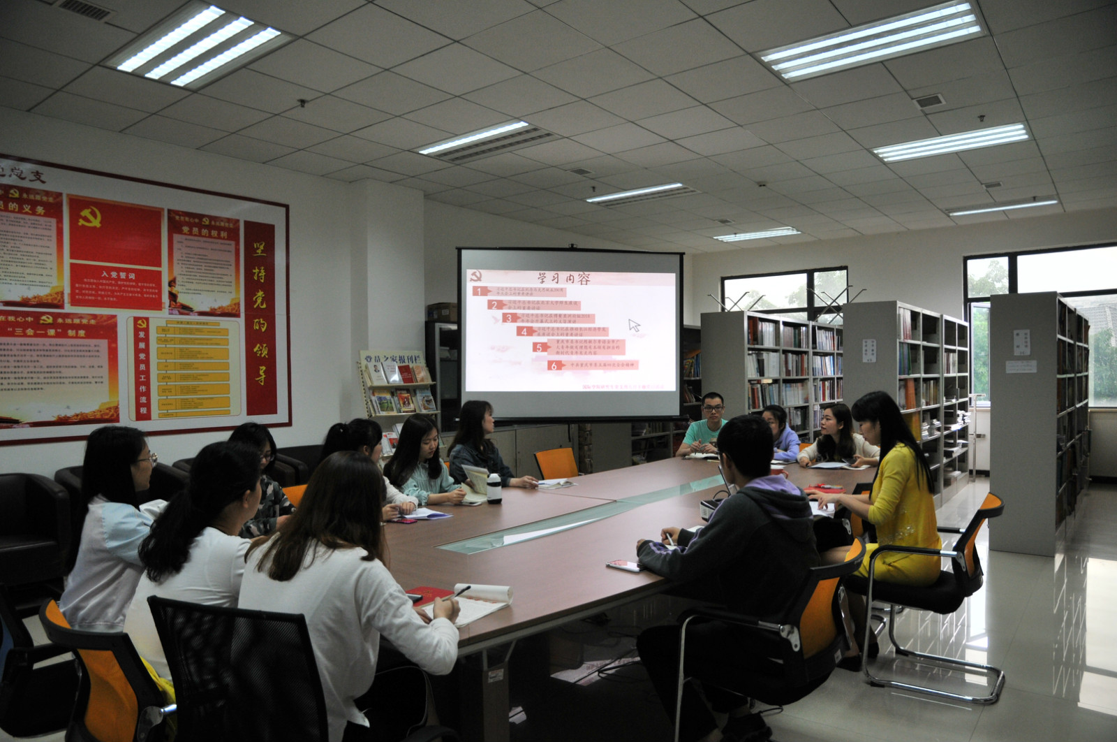 2018年5月11日下午3点,公司党总支研究生第一、第二党支部在紫云楼“党员活动室”(316室)开展了联合主题党日活动。本次活动由研究生第一党支部支部书记陈雨曦以讲党课的形式展开。