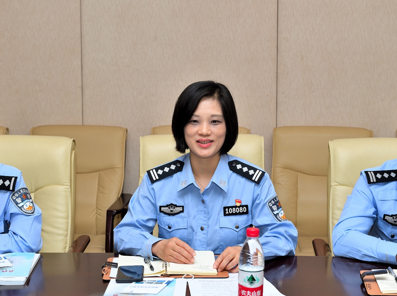 周庐飞支队长介绍出入境支队党建工作和管理服务开展情况,讲述支队荣誉背后的故事。