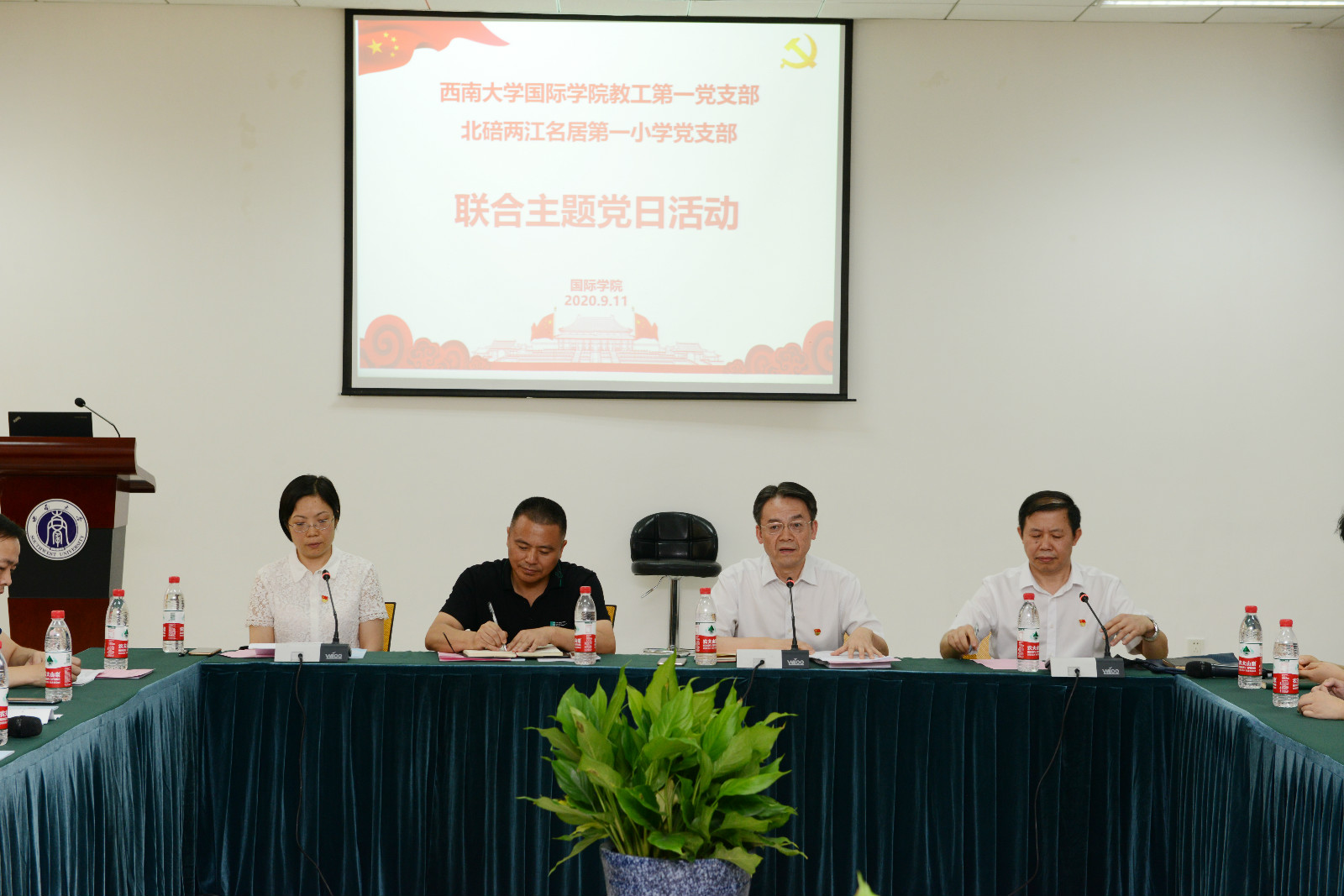 2020911日下午3:00,sunbet申搏教工第一党支部与北碚两江名居第一小学党支部在sunbet申搏317室联合举办主题党日活动,双方共计36名党员参会,会议由支部书记邱睿同志主持。