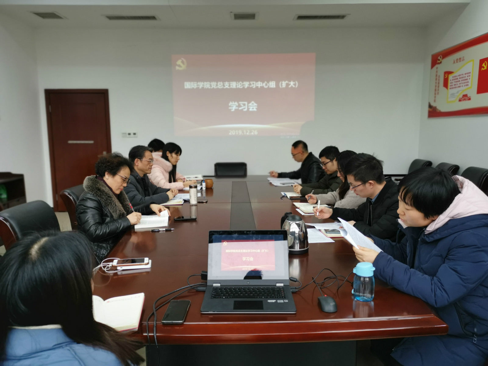 2019年12月26日下午15:30,公司党总支在紫云楼304室召开2019年秋季学期第2次党总支理论学习中心组(扩大)学习会,会议主题是:学习传达第十九届四中全会精神。党总支委员、非党总支委员的院领导、各支部书记和支部委员参加会议,北碚公安分局内部安全保卫支队副队长张彬彬同志受邀参会。会议由刘猛书记主持。