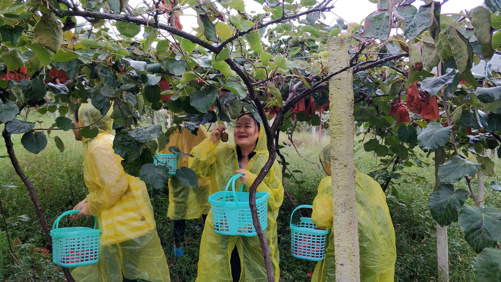 接着,大家来到猕猴桃园,刚进入,就被道路旁一片片的猕猴桃树给吸引住了,一个个诱人的猕猴桃在红色套袋的笼罩下挂满枝头,让人激动不已。大家边采摘,边品尝,还不时地驻足欣赏、拍照留影,尽情地感受美丽的田园风光和采摘的乐趣。