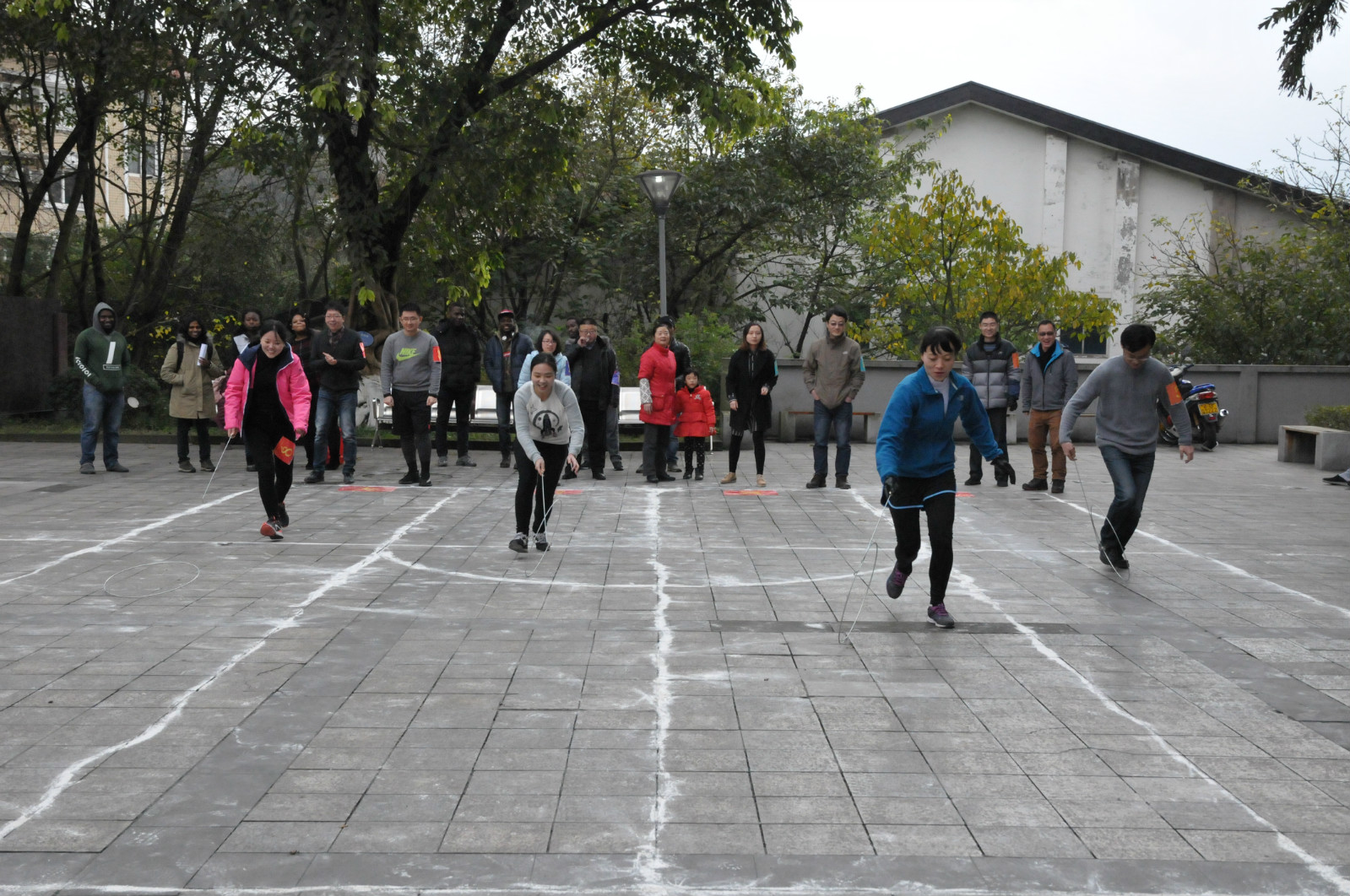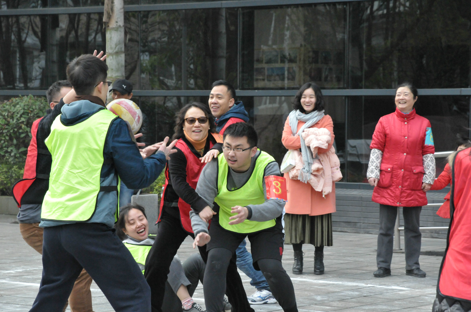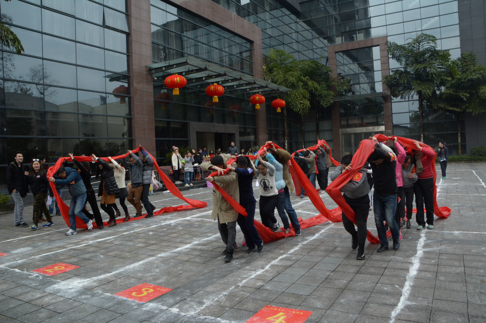 “铁人三项”(滚铁环、转呼啦圈和运乒乓球)让大家找回了童年的记忆,年纪长的老师亲手教年轻的老师滚铁环,平常没有转过呼啦圈的老师也努力摆动身体,给大家带来十足的“笑果”和满满的感动。“财源滚滚”各组站成一列,踩着象征吉祥的红色布带滚动向前,展现了团结一心、协作共进的势气。在chairball项目中,以两组对抗的形式,挑战着各组的体能和篮球技巧,也考验着团队协作能力。激烈的对抗引来观众阵阵呐喊,把趣味运动会的气氛推向了高潮。三分钟跳绳是全部项目中最轻松的,各组在跳绳一圈一圈地甩动中欢乐地蹦跳着,充分展示了大家的青春和活力。拔河比赛作为压轴大戏,交战双方寸土不让,双方拉拉队也开足火力,参赛队员面部狰狞的表情、爆出的青筋和胜利后激动的欢呼,充分展示了公司不畏艰难、奋力拼搏的精神。