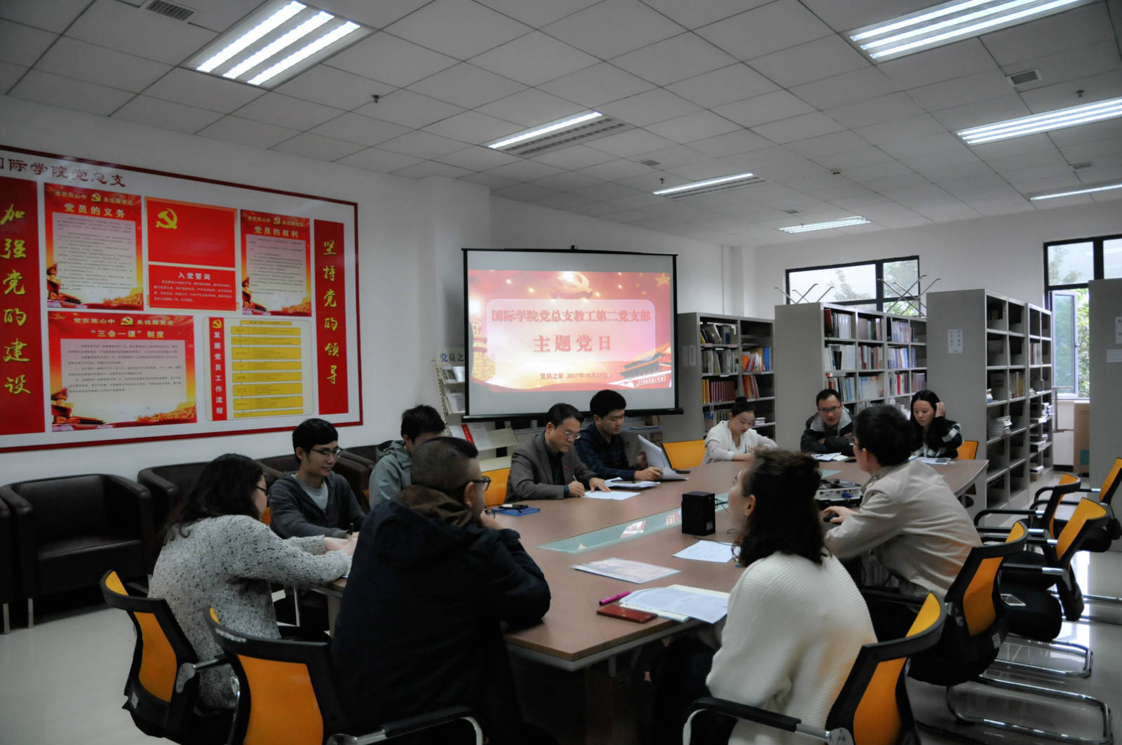 10月13日下午2:30至4:30,sunbet申搏教工第二党支部全体党员在公司党员活动室举行主题党日活动。支部书记李林泽同志首先带领全体党员学习了《主题党日让党性锤炼“大熔炉”烧得更旺》一文,对党日活动的内涵、目前党日活动存在的问题、应当采取的措施等进行了深入解读。随后,全体党员同志观看了《不忘初心 继续前进》专题片。在交流发言环节,同志们纷纷表示,对国家近年来外交成就的回顾,极大增强了国家荣誉感和民族自豪感,并结合自身工作,畅谈了国家外交战略对来华留学工作的启示。