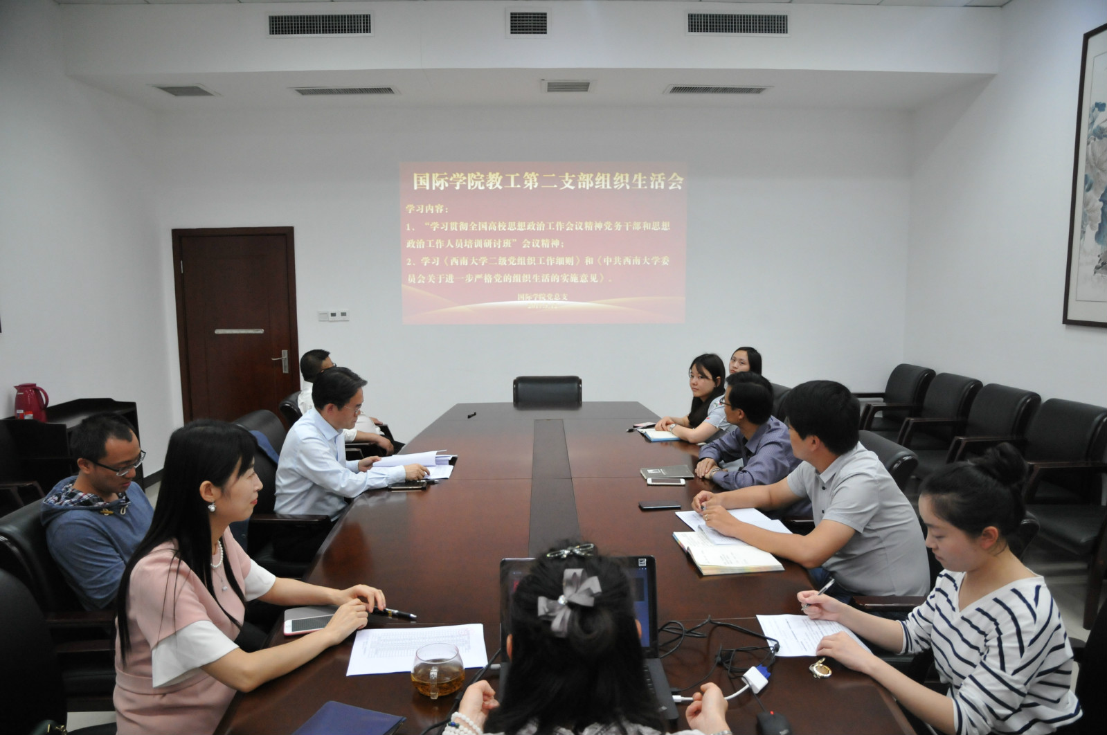 本次组织生活会共分三个部分。首先,集中学习公司“学习贯彻全国高校思想政治工作会议精神党务干部和思想政治工作人员培训研讨班”会议精神、《sunbet申搏二级党组织工作细则》以及《中共sunbet申搏委员会关于进一步严格党的组织生活的实施意见》。然后,党总支所属各支部分别在304会议室、305会议室以及签约室观看习近平总书记在中国政法大学考察时的新闻报道并进行了发言讨论。最后,大家以民主公开投票的方式对思想政治工作先进集体和先进个人进行了推荐。