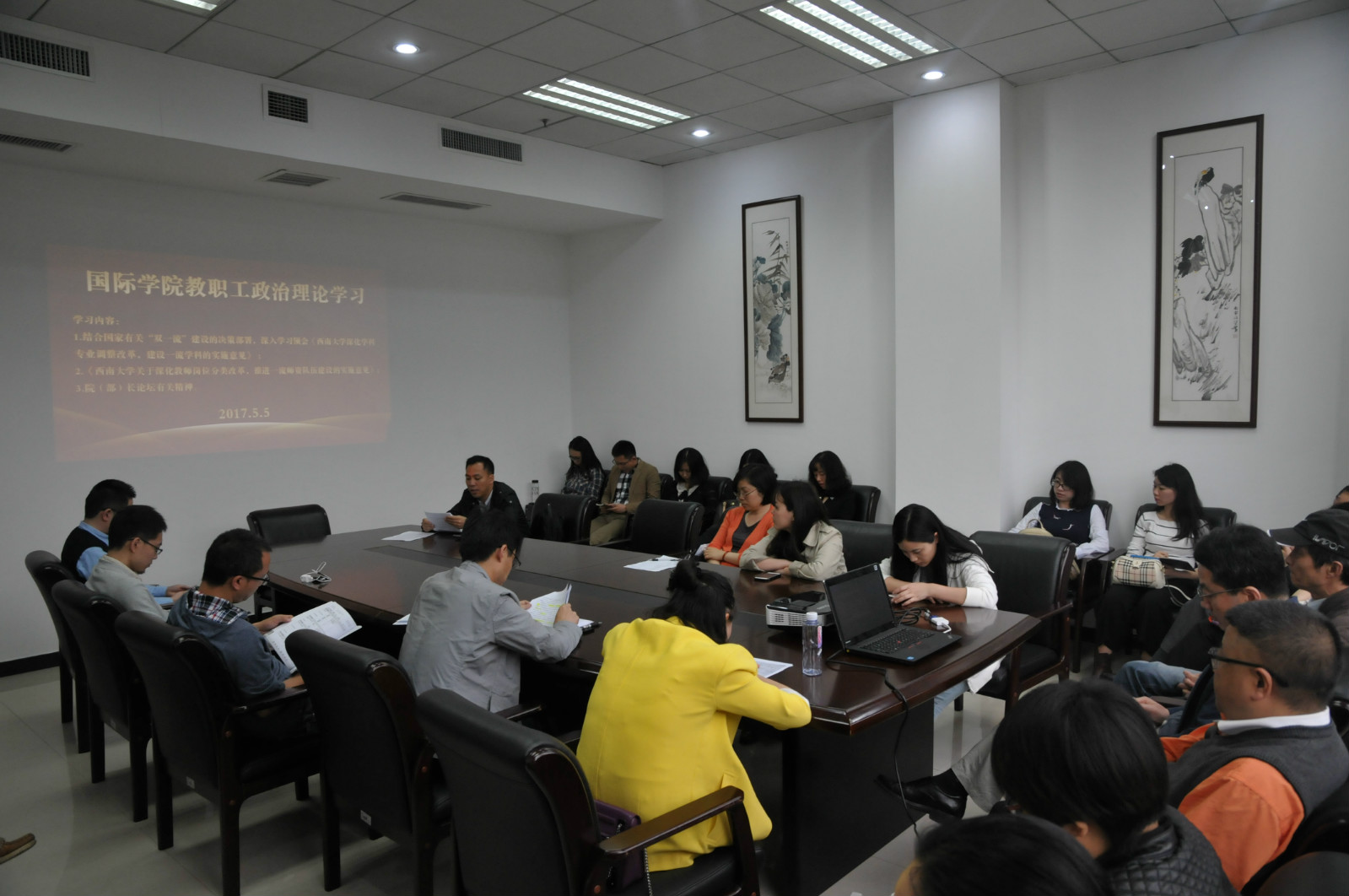 2017年5月5日下午3:00sunbet申搏全体教职工开展政治理论学习活动,学习会由党总支委员代远鸿同志主持。