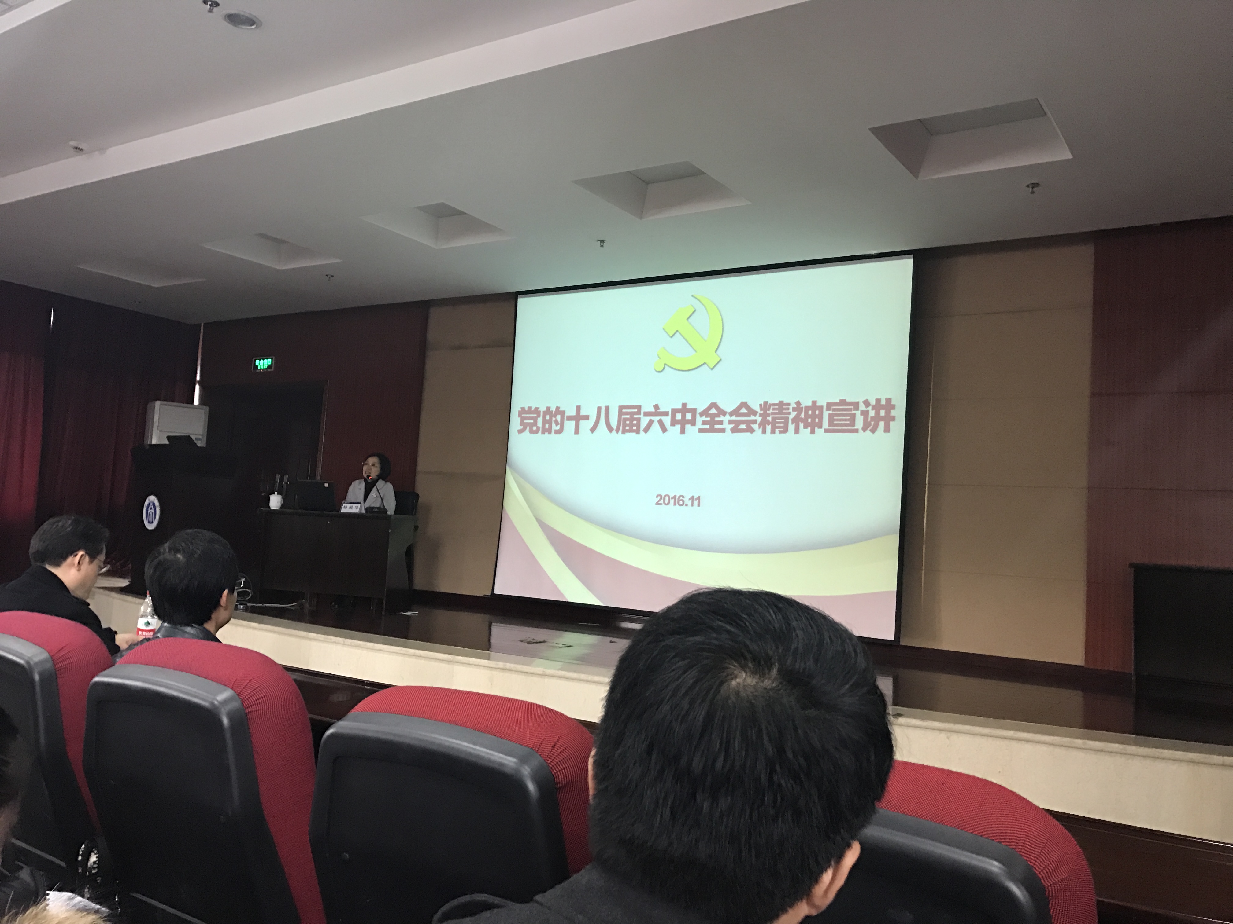 2016年12月2日下午2:30sunbet申搏全体教职工在外国语公司903报告厅参加十八届六中全会精神宣讲会,主讲人为组织部部长杨爱华同志。