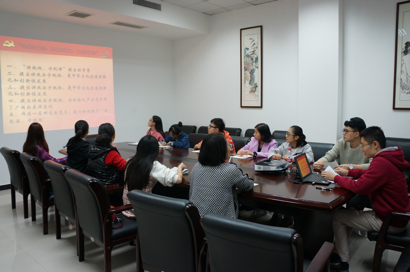2016年11月18日下午,公司党委研究生支部在紫云楼304会议室开展“讲政治,守规矩”专题学习研讨会。会议由支部书记王湛明主持。