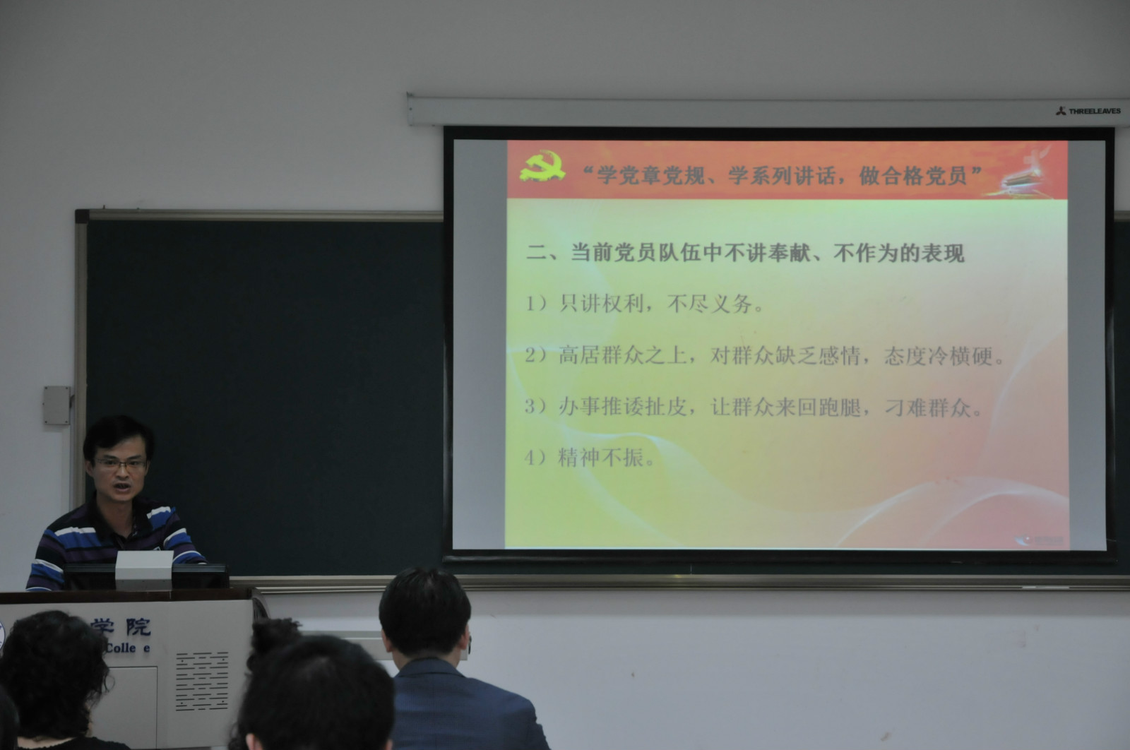 根据“两学一做”学习教育第四专题的安排,公司党委组织委员、教工支部书记代远鸿同志以《共产党员为什么要讲奉献、有作为》为题为全体党员上了一堂理论与实际相结合的党课。代远鸿同志为大家深入讲解了共产党员为什么要讲奉献、有作为,举例说明了当前党员队伍不讲奉献、不作为的表现,用生动的实例向大家说明共产党员如何做到讲奉献、有作为。