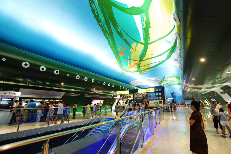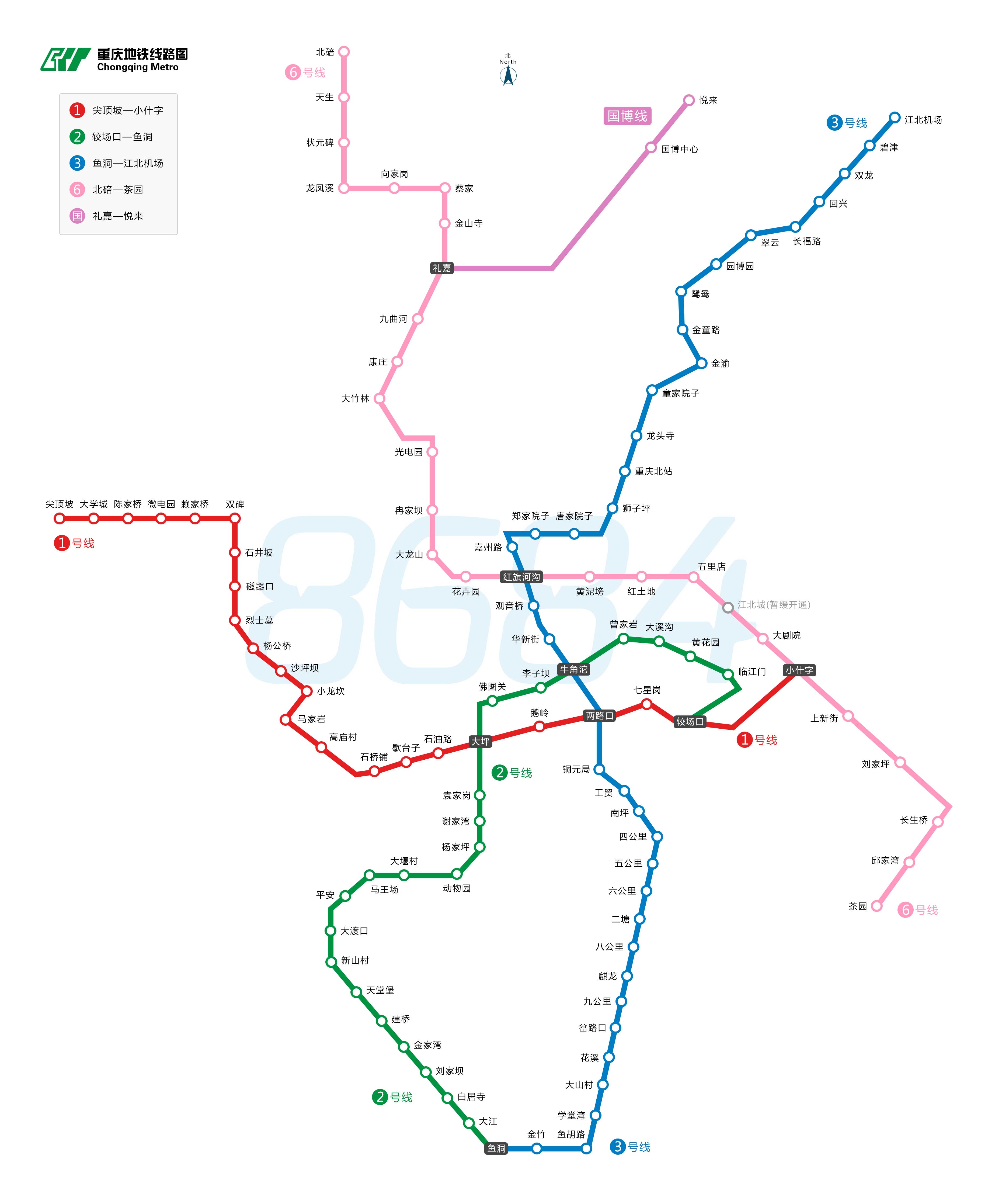 始发于北碚的地铁六号线通往重庆各大商圈。线路横跨长江、嘉陵江,贯穿了南岸区、渝中区、江北区、渝北区、北碚区五个行政区,连接弹子石、解放碑、江北城、观音桥等主要商业核心区。票价2至7元不等,通往主要商业区域仅需40分钟左右。